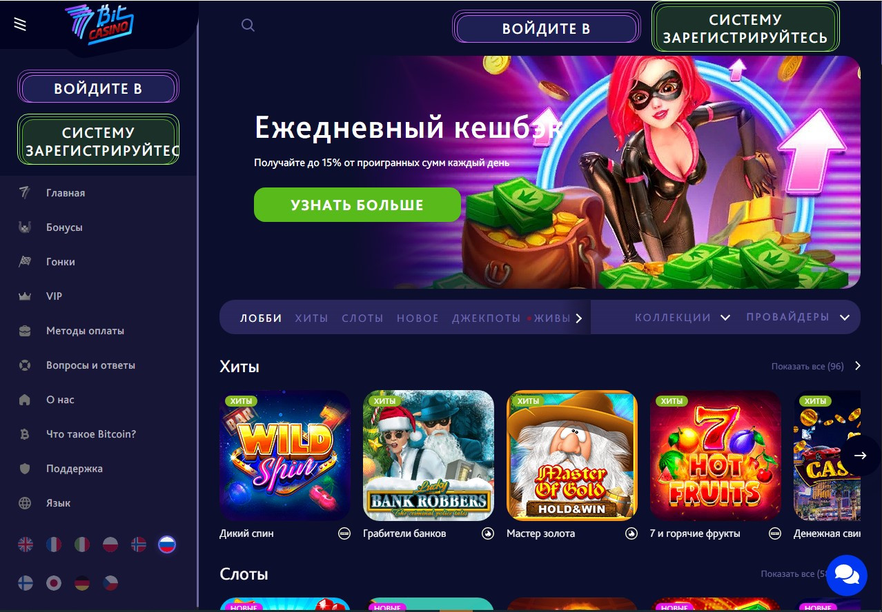 7BitCasino совсем недавно вышло на российский рынок.В казино представлены 54 провайдера с огромным количеством игр-это настольные игры,все виды live игр,игры с джекпотами.Возможность сортировки слотов на высокий и низкий риск,а также раздел со слотами,в которых есть возможность покупки бонусок. Проводятся регулярные гонки.В 7BitCasino отличный стартовый пакет,регулярные бонусы и два вида кешбека.Каждый игрок найдёт для себя что-то интересное.