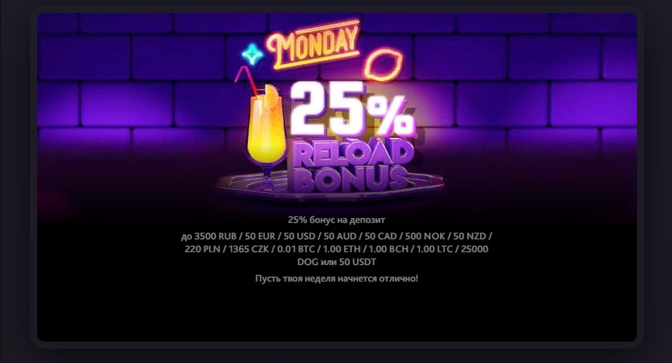 БОНУС ПО ПОНЕДЕЛЬНИКАМ