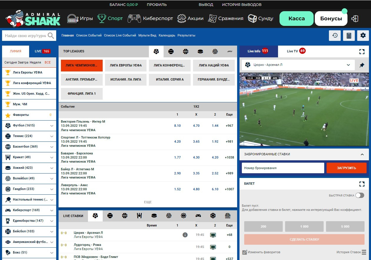 В казино Admiral Shark предусмотрены бонусы не только в казино,но и в разделе "спорт" и в разделе "киберспорт".