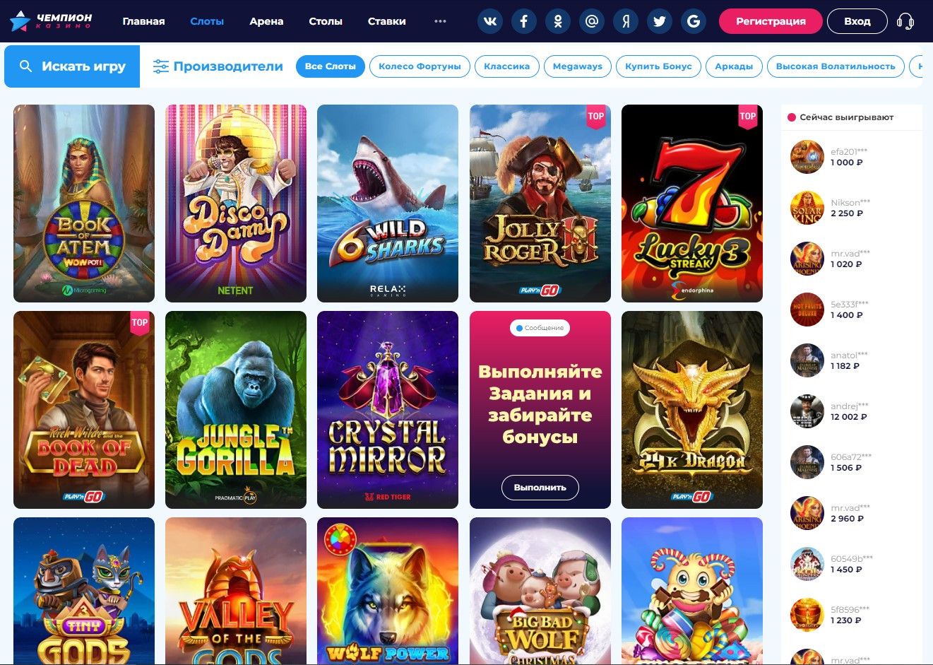 Для любого игрока, который любит чувство азарта, важно качество предоставленных игр. Чемпион предлагает слоты от крупных производителей со всего мира. Это компании NetEnt, Platipus, Quickspin, Booongo, EGT, Evolution и ряд других знаменитых провайдеров. Каждый производитель заботится о своем рейтинге и постоянно предлагает новинки, а также проводит множество акций с действительно большими призовыми фондами.