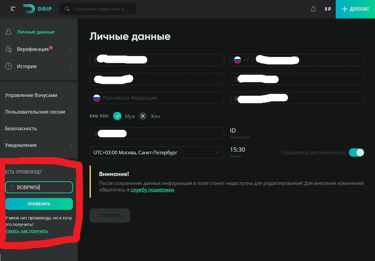 Войдите в свой ПРОФИЛЬ,введите код BOBPW50 и активируйте его.