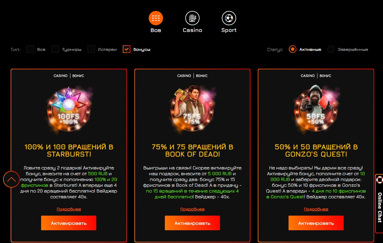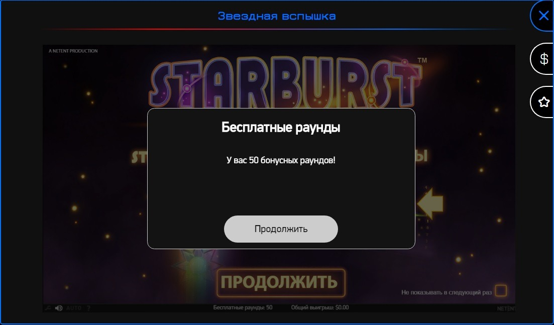 Первый депозит 500 рублей -100% бонус плюс 100 фриспинов в Starburst