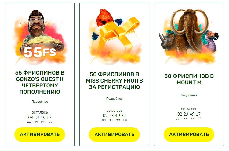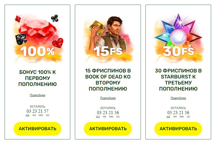 За третий депозит от 3000 рублей вы получите 30 фриспинов в слоте Starburst/