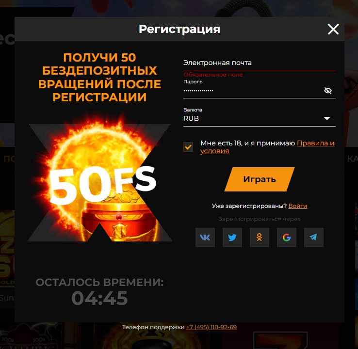 Перейдя по ссылке,дождитесь загрузки окна с регистрацией и зарегистрируйтесь в казино