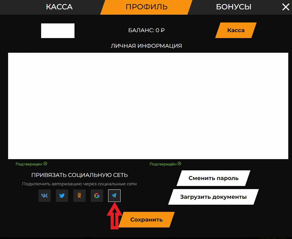 Войдите в профиль и подключите авторизацию через социальные сети.В данном случае нажмите на значок Telegram.