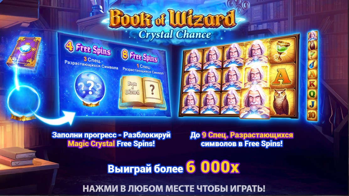 1. За депозит от €20 с кодом BW100 вы получите бонус 100% в слот Book Of Wizard - Crystal Chance