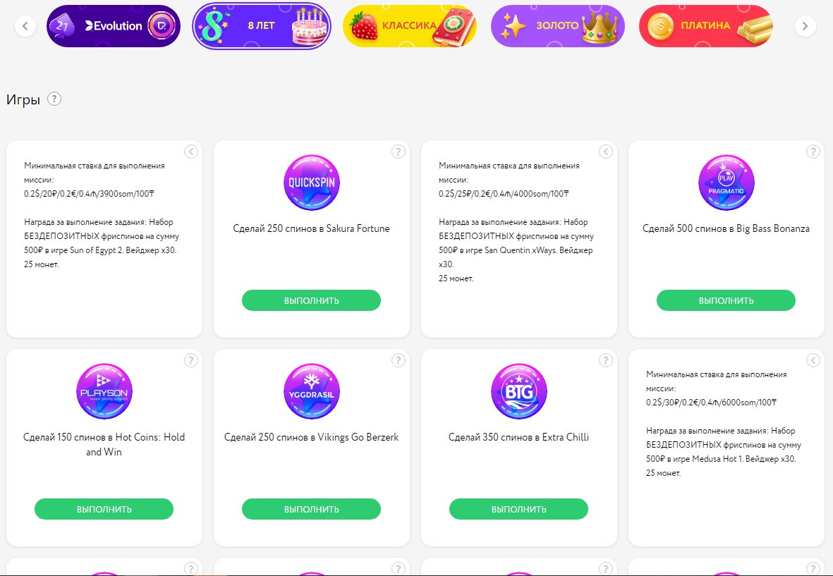 PokerDom регулярно предлагает индивидуальные бонусы,которые можно активировать в личном кабинете.Ещё казино предлагает всевозможные задания,за выполнение которых вы будете получать разное кол-во фриспинов по разным ставкам в разных слотах и наличные за достижения уровней.