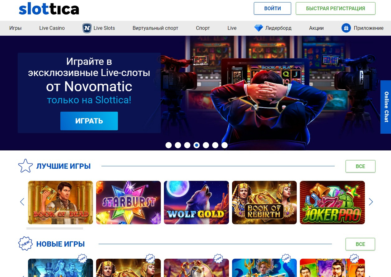 Также казино Slottica даёт вам уникальную возможность поиграть в "живые" автоматы с онлайн-камерой,которые были популярными во всех игровых клубах России.