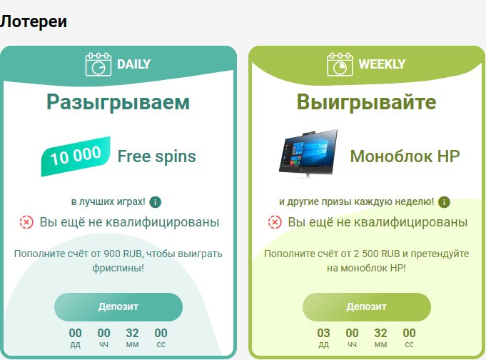 2. Пополните счёт от 2500 рублей и получите шанс выиграть моноблок HP,Apple Watch,виски или фриспины.Розыгрыш один раз в неделю.Призы можно обменять на деньги без условий.На фриспины вейджер Х45.