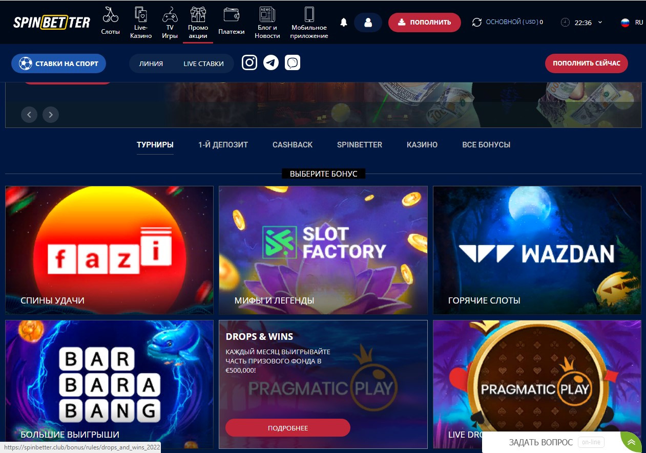 Казино SpinBetter - новое лицензионное казино,с наиболее известными топ-производителями програмного обеспечения для онлайн казино,для новых игроков предлагает бездепозитный бонус-150 бесплатных вращений в игровом автомате Big Bass Bonanza Megaways от Pragmatic Play