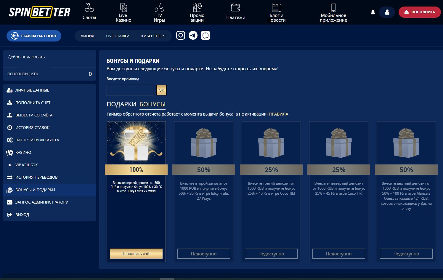 SpinBetter поддерживает своих игроков в трудный период и дарит бонус за серию неудачных ставок!