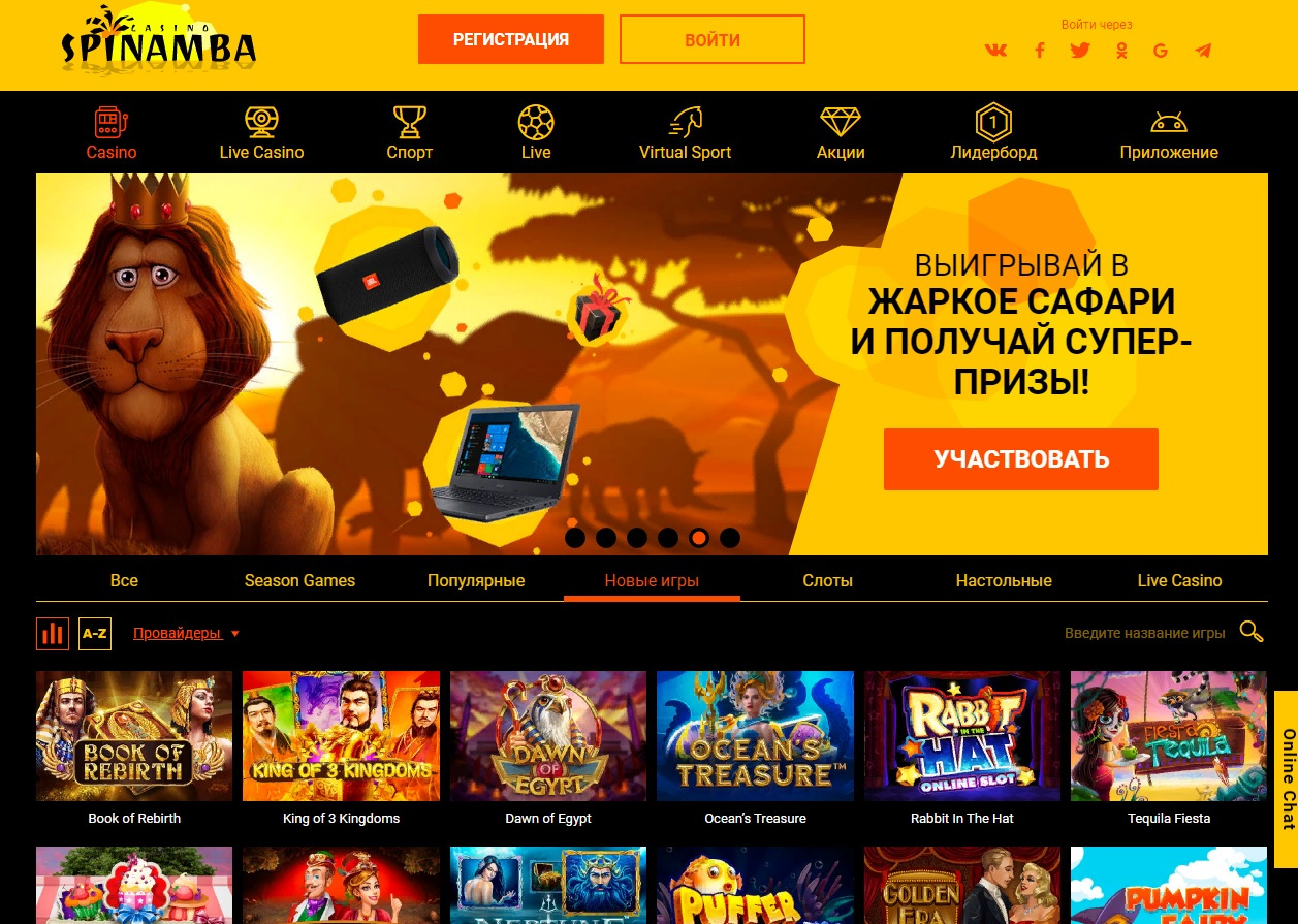 Новое лицензионное казино Spinamba предлагает своим игрокам весь спектр игр(игровые автоматы,ставки на спорт,игры с живыми дилерами,виртуальный спорт,а также казино-турниры).В арсенале казино 52 игровых провайдеров от самых известных производителей лицензионных слотов.Для новых игроков бездепозитный бонус за регистрацию-25 бесплатных вращений в Dead or Alive 2 и 25 спинов в Gonzo's Quest